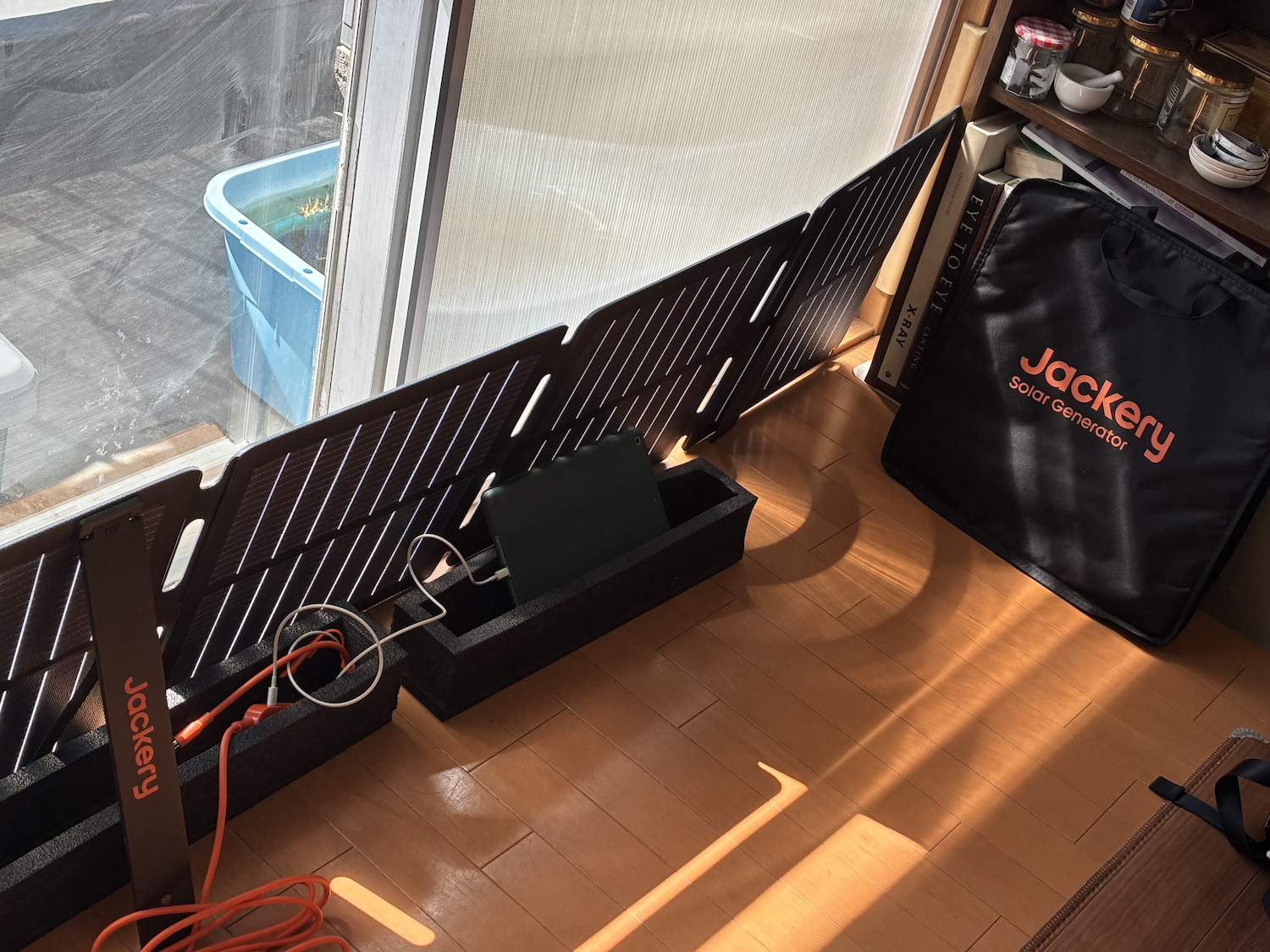 購入したのは、[Jackery]SolarSaga 100Air ソーラーパネルです。ポータブル電源本体もいずれは購入する予定。どれを買ったらいいか、検討してからです。